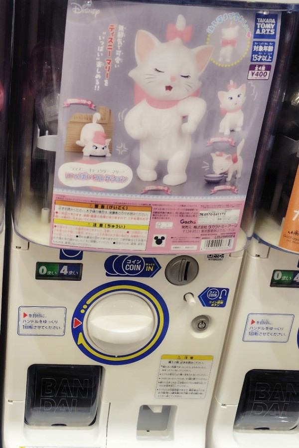 ディズニーキャラクター マリーいっぱいコレクションの価格は各400円(税込)で、全国のガチャガチャやガチャポン、ガチャなどで手に入れることができます。
