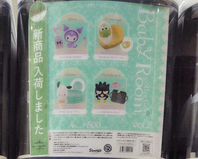 サンリオキャラクターズ ベビールームコレクション 第2弾の価格は各500円(税込)で、全国のガチャガチャやガチャなどで手に入れることができます。