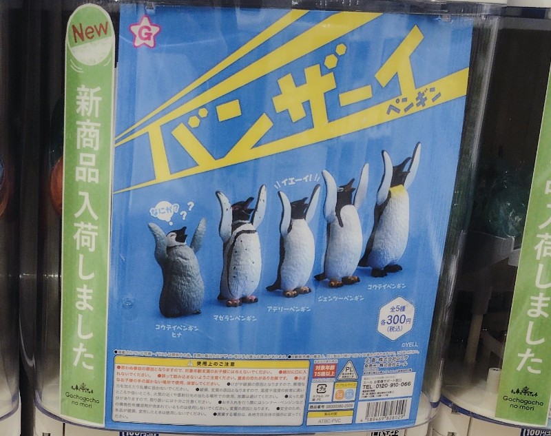 バンザーイ ペンギンは、全国ガチャガチャやガチャなどで手に入れることができるカプセルトイで、全5種のラインナップです。