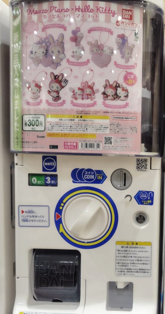 メゾピアノ×ハローキティ カプセルラバーマスコットの価格は各300円(税込)で、全国のガシャポンやガチャガチャなどで手に入れることができます。