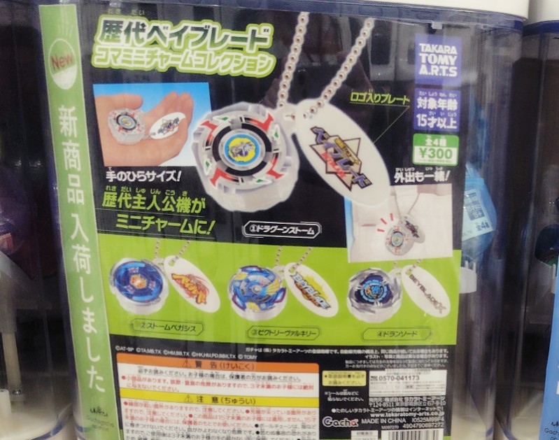 歴代ベイブレード コマミニチャームコレクションの価格は各400円(税込)で、全国のガチャガチャやガチャポン、ガチャなどで手に入れることができます。