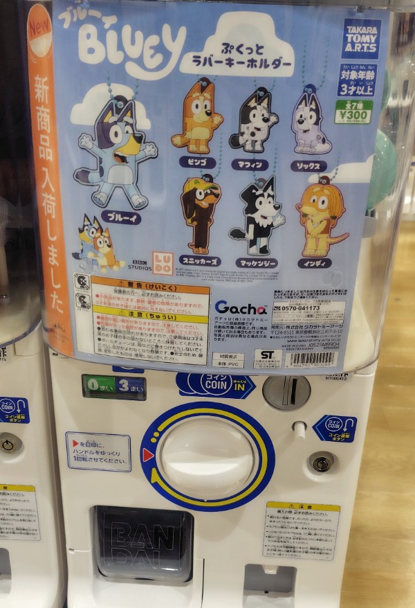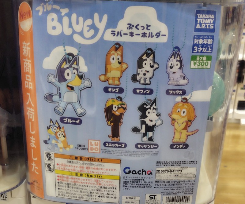 ブルーイ ぷくっとラバーキーホルダーの価格は各300円(税込)で、全国のガチャガチャやガチャポン、ガチャなどで手に入れることができます。