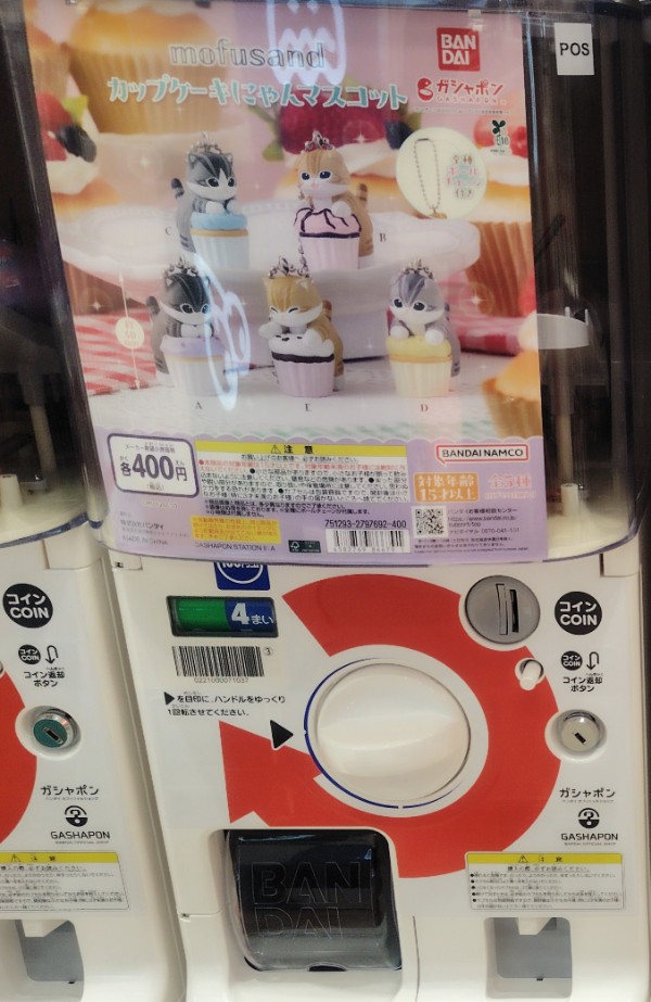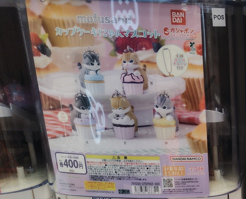 mofusand カップケーキにゃんマスコットの価格は各400円(税込)で、全国のガシャポンやガチャガチャなどで手に入れることができます。