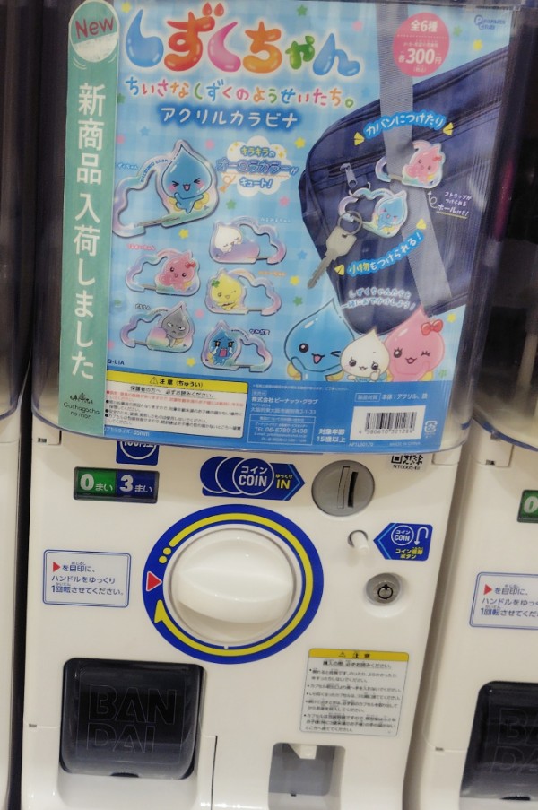 しずくちゃん アクリルカラビナの価格は各300円(税込)で、全国のガチャガチャやガチャポン、ガチャなどで手に入れることができます。