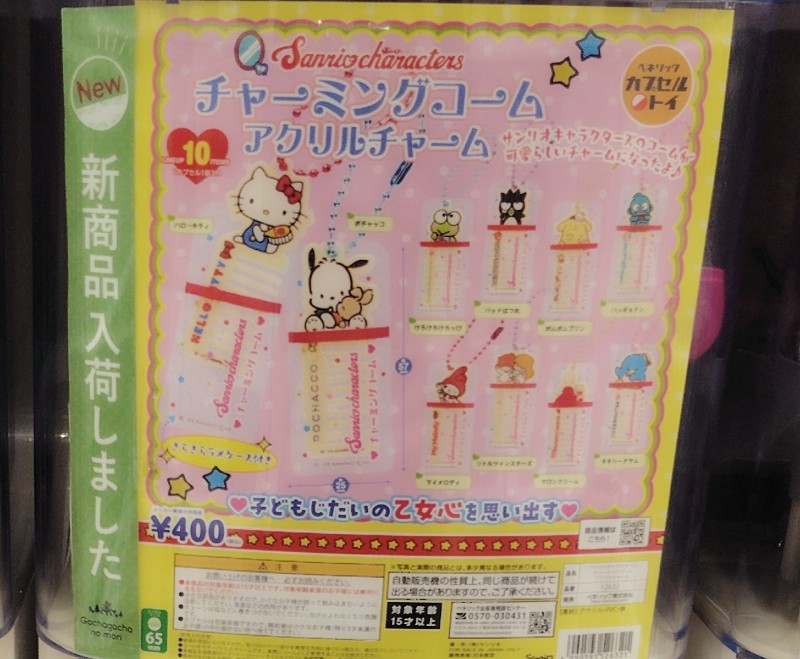 サンリオキャラクターズ チャーミングコームアクリルチャームの価格は各400円(税込)で、全国のガチャガチャやガチャポン、ガチャなどで手に入れることができます。