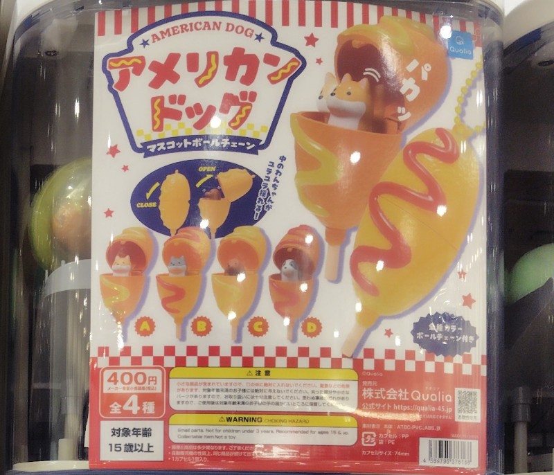 アメリカンドッグ マスコットボールチェーンの価格は各400円(税込)で、全国のガチャガチャやガチャポン、ガチャなどで手に入れることができます。