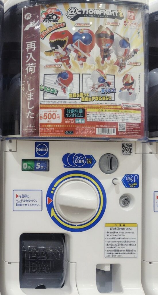 @CTION FIGHT(アクションファイト) スーパー戦隊シリーズ2の価格は各500円(税込)で、全国のガシャポンやガチャガチャなどで手に入れることができます。