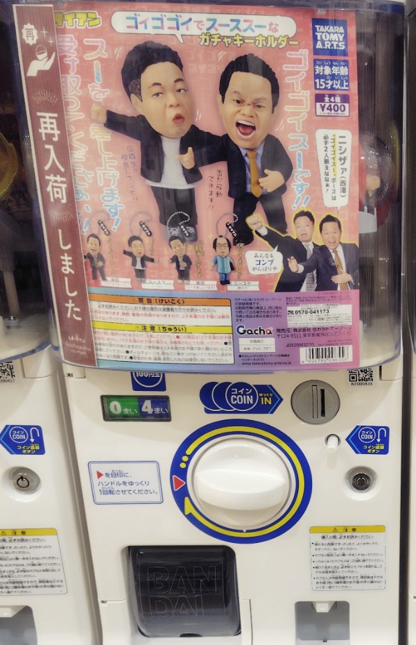 ダイアン ゴイゴゴイでスーススーなガチャキーホルダーは、自身の持ちギャグポーズや名物キャラクターのフィギュアキーホルダーで、首が可動するというギミック付きです。