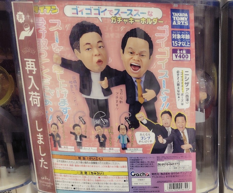 ダイアン ゴイゴゴイでスーススーなガチャキーホルダーは、自身の持ちギャグポーズや名物キャラクターのフィギュアキーホルダーで、首が可動するというギミック付きです。