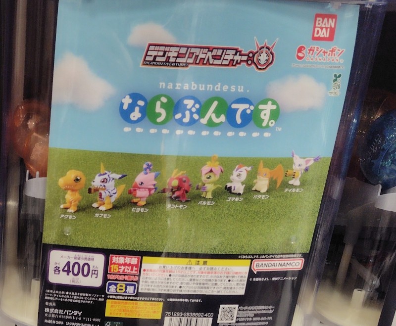 デジモンアドベンチャー: ならぶんです。の価格は各400円(税込)で、全国のガシャポンやガチャポン、ガチャガチャ、ガチャなどで手に入れることができます。