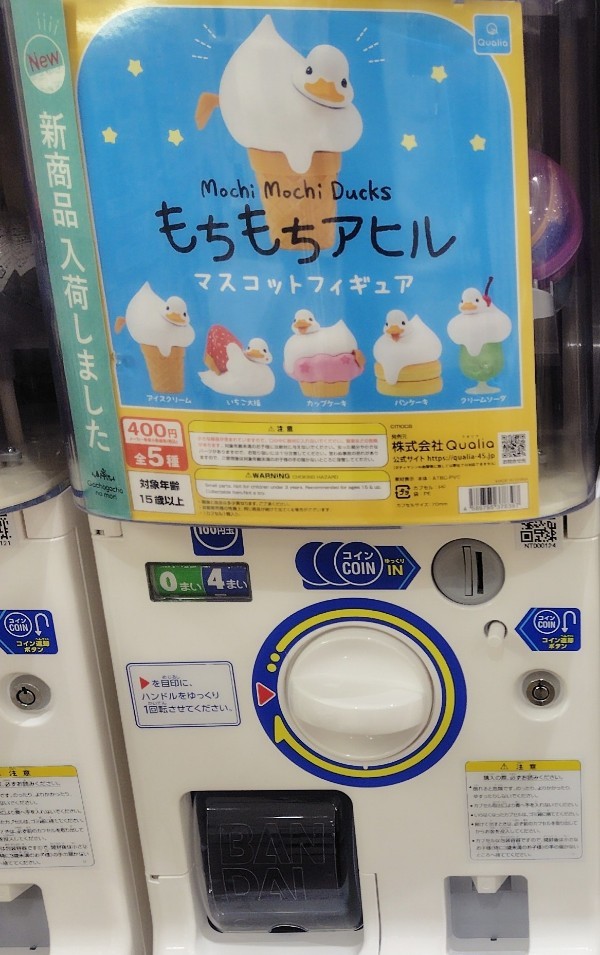 もちもちアヒル マスコットフィギュアの価格は各400円(税込)で、全国のガチャガチャやガチャポン、ガチャなどで手に入れることができます。