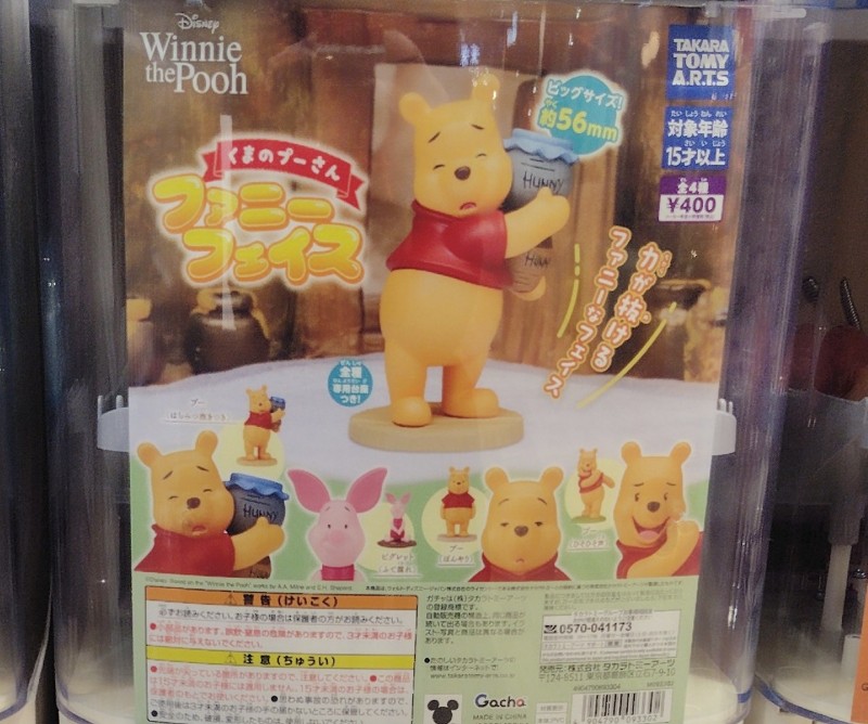 くまのプーさん ファニーフェイスは、全国のガチャガチャやガチャポン、ガチャなどで手に入れることができるカプセルトイで、全4種のラインナップです。