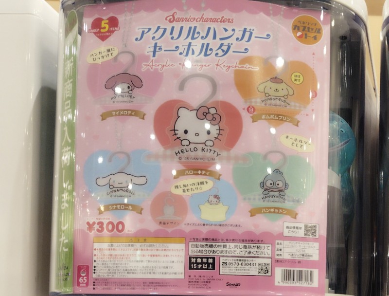 サンリオキャラクターズ アクリルハンガーキーホルダーの価格は各300円(税込)で、2025年10月発売です。