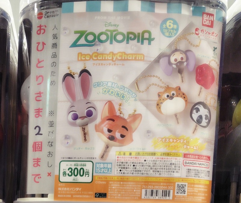 【ズートピア アイスキャンディチャーム】は、ガシャポンに登場した、アイスキャンディをイメージしたズートピアキャラクターのマスコットチャームです。