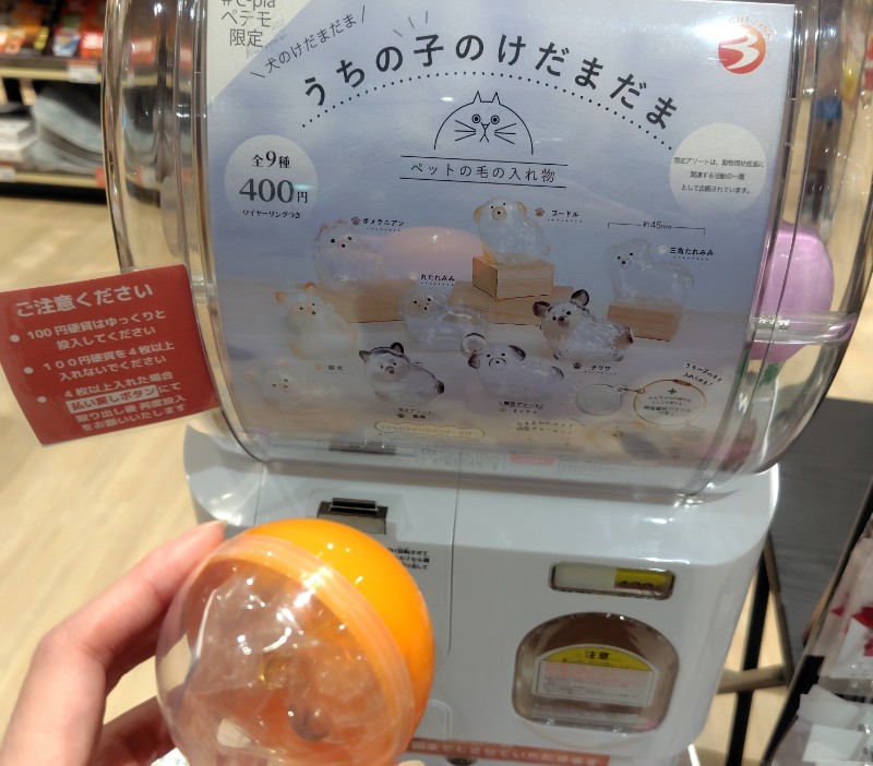 うちの子のけだまだま 犬のけだまだまは、ペットの毛を入れる入れ物で、持ち歩くこともでき、全6種のラインナップで、C-pla ペテモ限定では、全9種のラインナップです。
