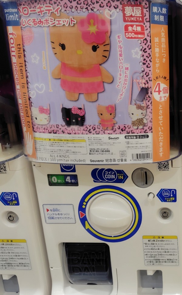 ハローキティ ぬいぐるみポシェットの価格は各500円で、全国のガチャガチャやガチャポン、ガチャなどで手に入れることができます。
