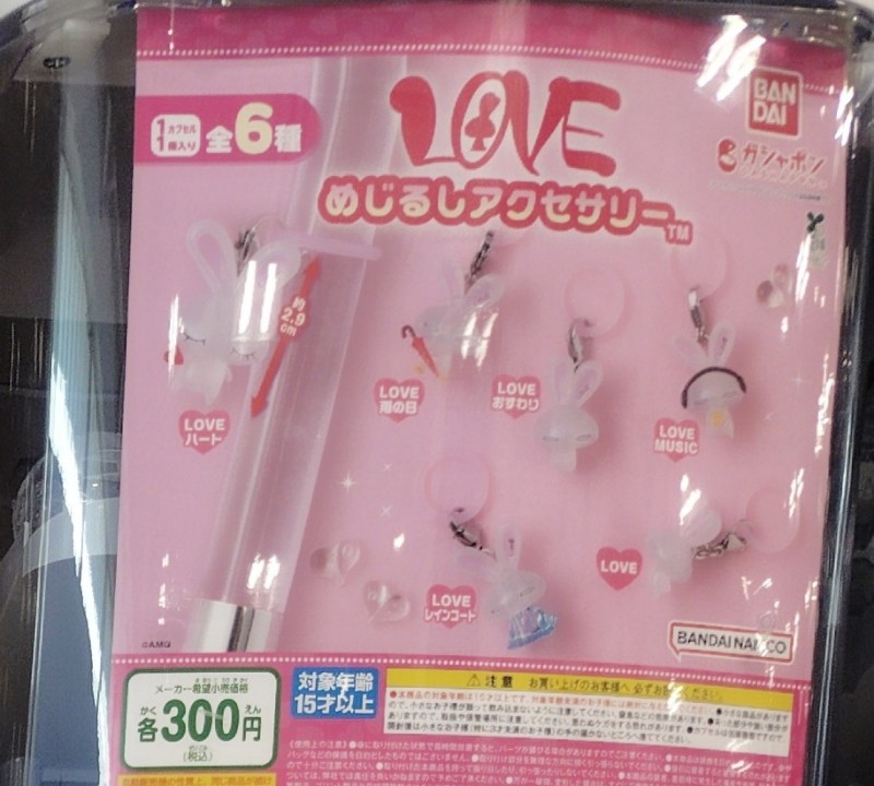 LOVE めじるしアクセサリーは、全国のガシャポンやガチャガチャなどで手に入れることができるカプセルトイで、全6種のラインナップです。