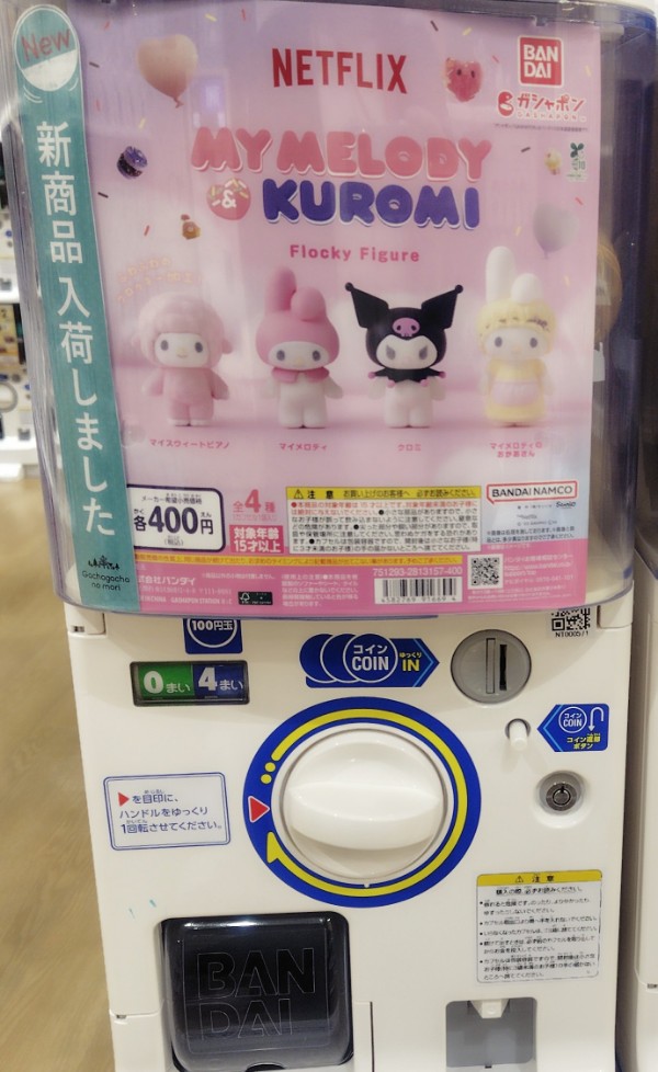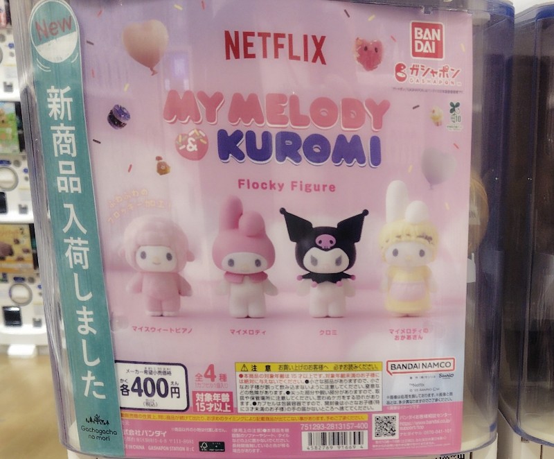 Netflix マイメロディ&クロミ フロッキーフィギュアの価格は各400円(税込)で、全国のガシャポンやガチャガチャ、ガチャポン、ガチャなどで手に入れることができます。