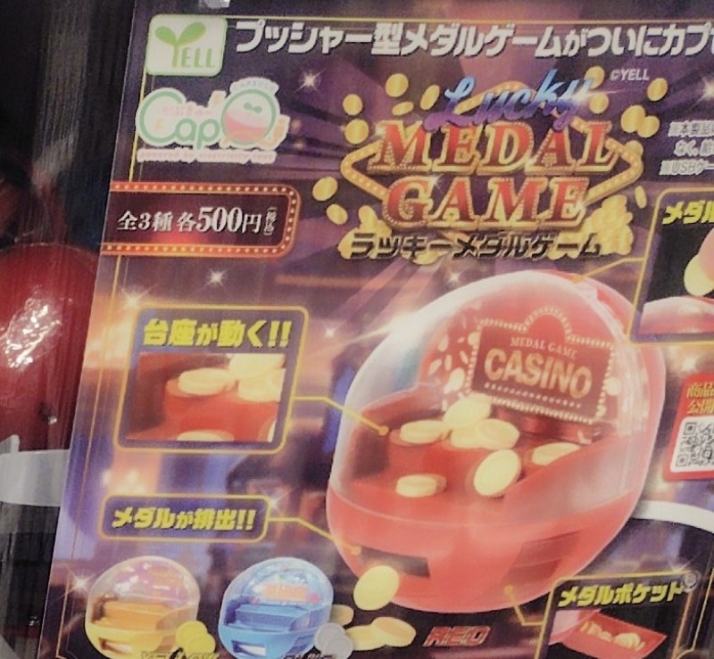 MEDAL GAME ラッキーメダルゲームは、カプセルトイに登場した、メダルを投入すると台座が動くメダルゲームです。