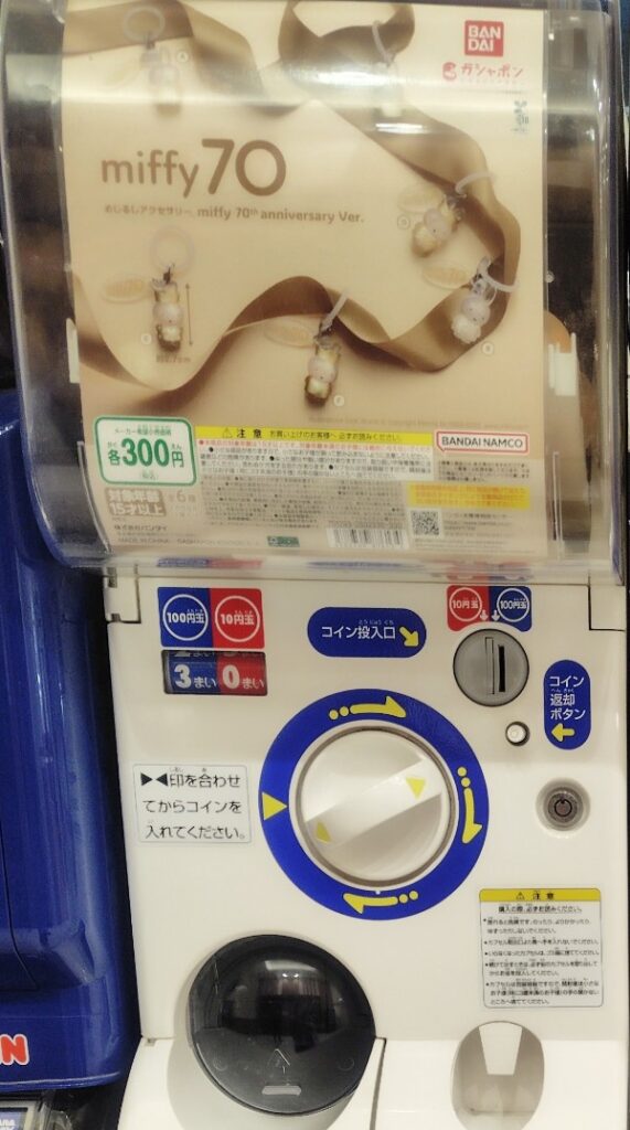 めじるしアクセサリー miffy 70th anniversary Verは、全国のガシャポンやガチャガチャなどで手に入れることができるカプセルトイで、全6種のラインナップです。
