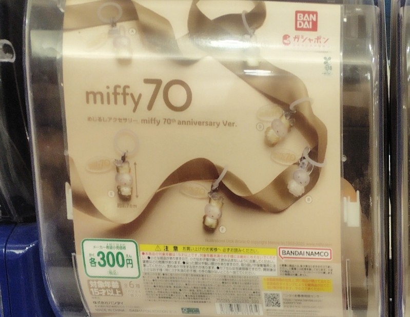 めじるしアクセサリー miffy 70th anniversary Verは、ガシャポンに登場した、miffy(ミッフィー)70周年を記念した 特別なめじるしアクセサリーです。