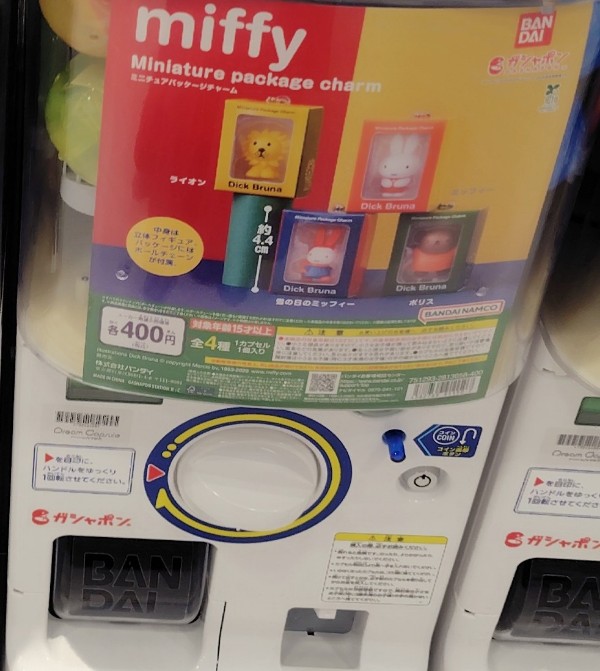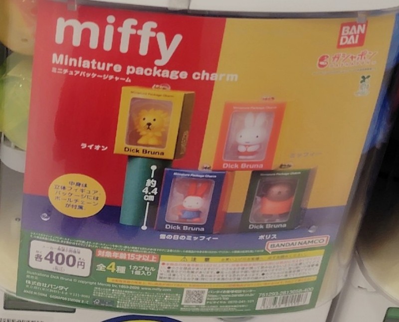 miffy ミニチュアパッケージチャームの価格は各400円(税込)で、全国のガシャポンやガチャポン、ガチャガチャ、ガチャなどで手に入れることができます。