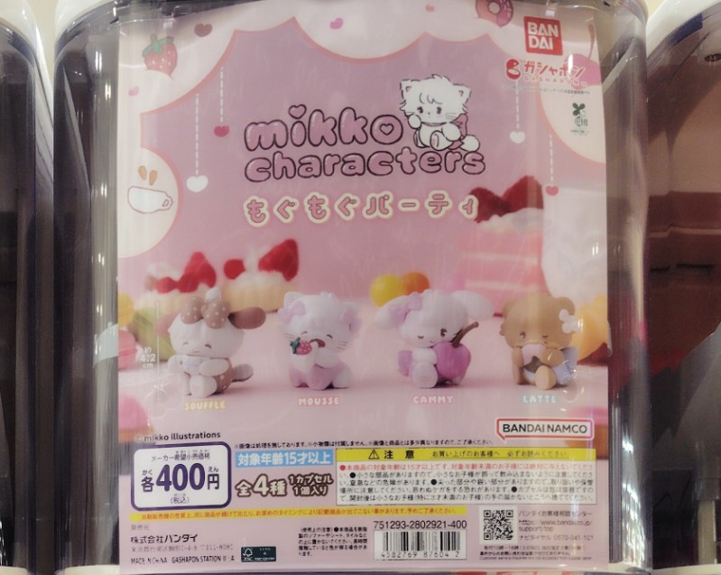 mikko characters もぐもぐパーティの価格は各400円(税込)で、全国のガチャガチャやガチャなどで手に入れることができます。