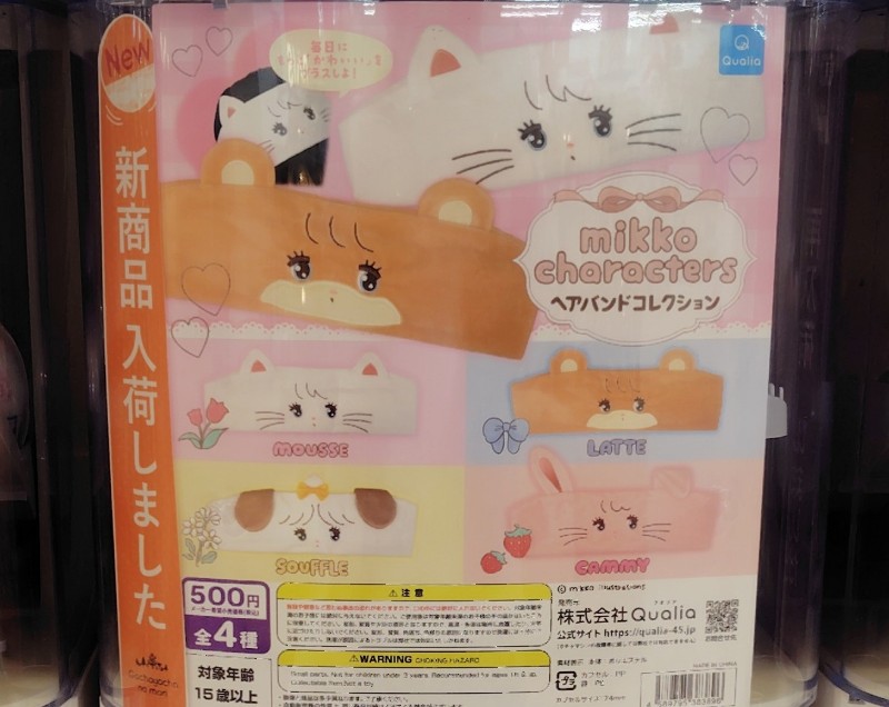 mikko characters ヘアバンドコレクションの価格は各500円(税込)で、全国のガチャガチャやガチャポン、ガチャなどで手に入れることができます。