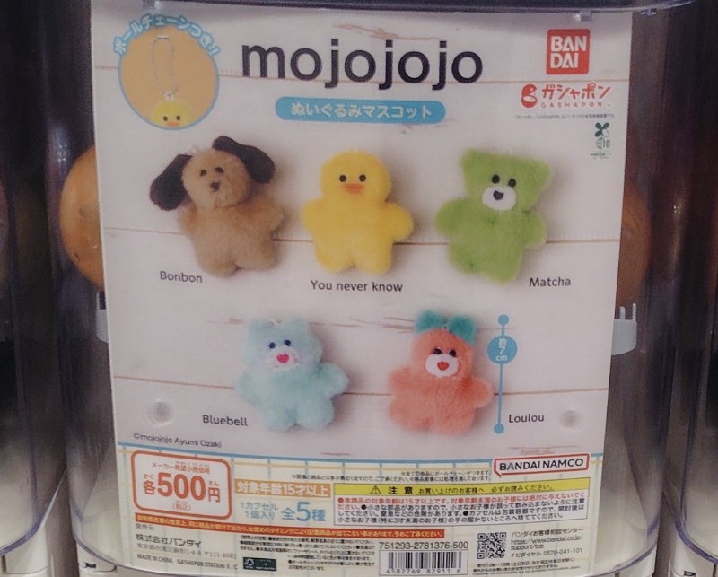 mojojojo ぬいぐるみマスコットの価格は各500円(税込)で、全国のガシャポンやガチャガチャなどで手に入れることができます。