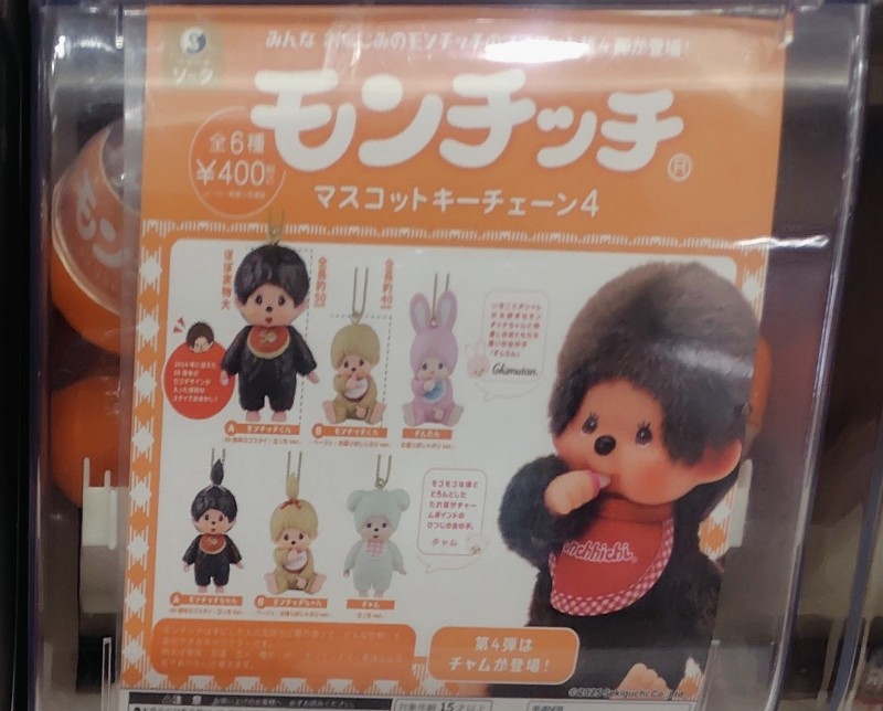 モンチッチ マスコットキーチェーン4の価格は各400円(税込)で、全国のガチャガチャやガチャポン、ガチャなどで手に入れることができます。
