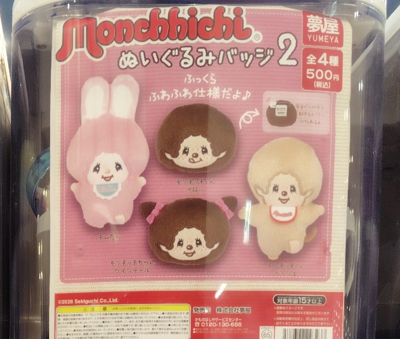 モンチッチ ぬいぐるみバッジ2の価格は各500円(税込)で、2026年1月発売です。