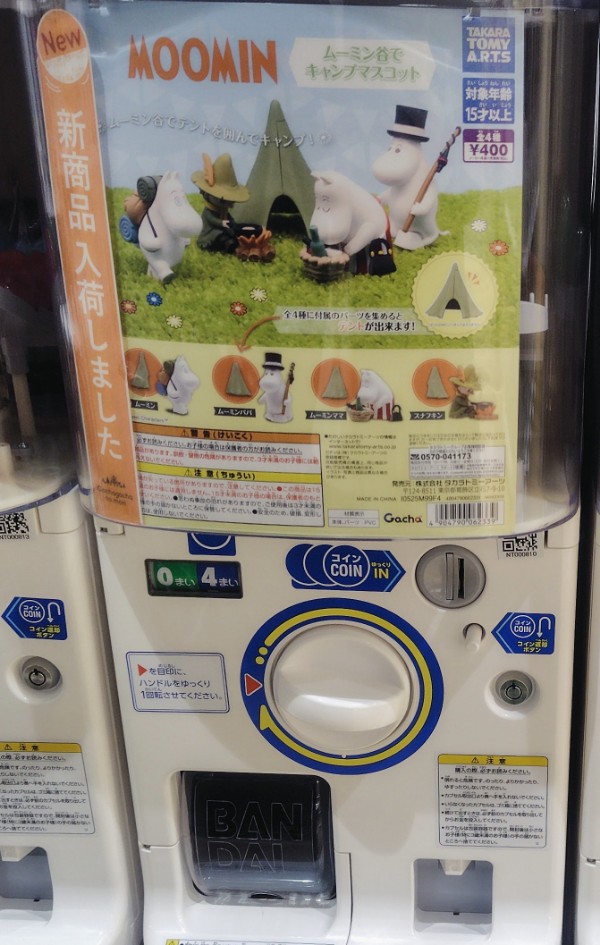 ムーミン谷でキャンプマスコットの楽しみ方は、ガチャガチャ遊びを楽しむことです。