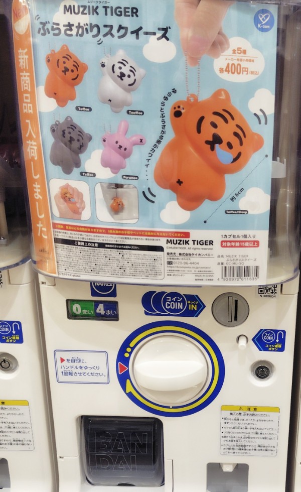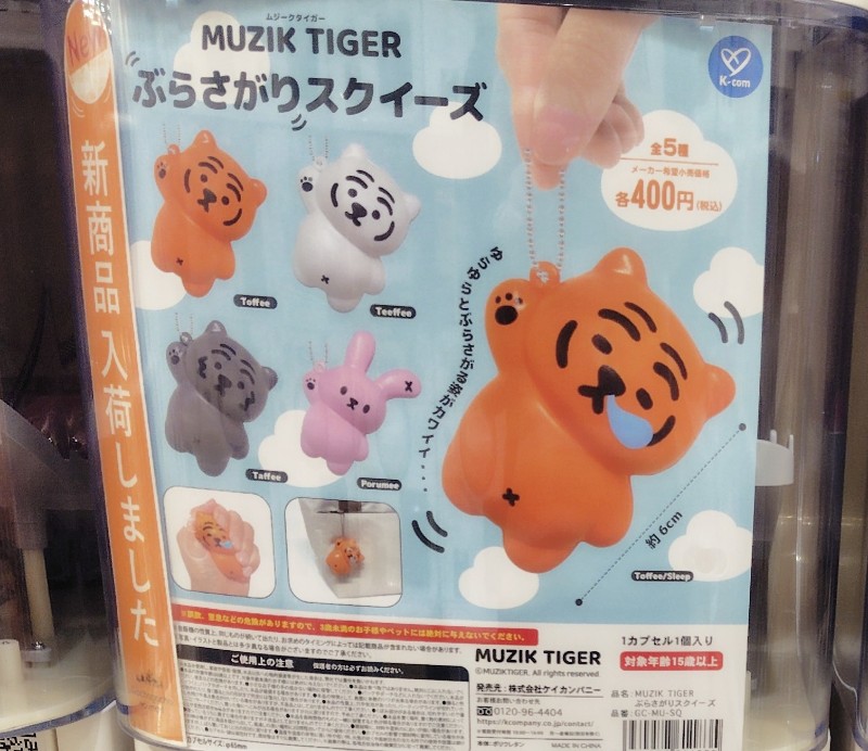 MUZIK TIGER ぶらさがりスクイーズの価格は各400円(税込)で、全国のガチャガチャやガチャポン、ガチャなどで手に入れることができます。