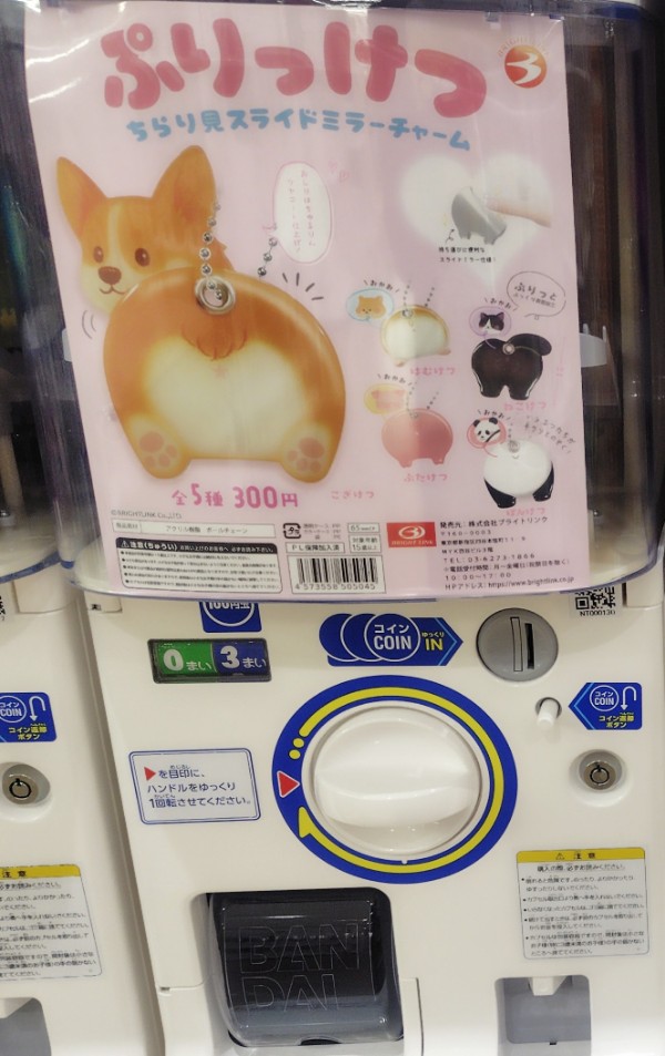 ぷりっけつ ちらり見スライドミラーチャームの価格は各300円(税込)で、全国のガチャガチャやガチャポン、ガチャなどで手に入れることができます。