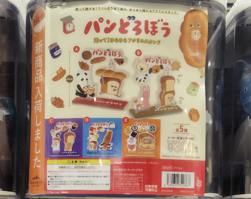 パンどろぼう 走って!ゆらゆらアクリルスタンドの価格は各300円(税込)で、全国のガチャガチャやガチャなどで手に入れることができます。