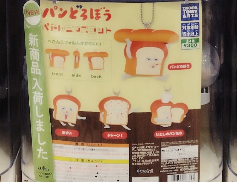 パンどろぼう ぺたんこマスコットは、全国のガチャガチャやガチャポン、ガチャなどで手に入れることができるマスコットで、全4種のラインナップです。