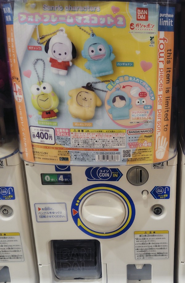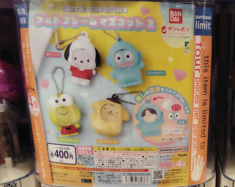サンリオキャラクターズ フォトフレームマスコット2の価格は各400円(税込)で、全国のガシャポンやガチャガチャなどで手に入れることができます。