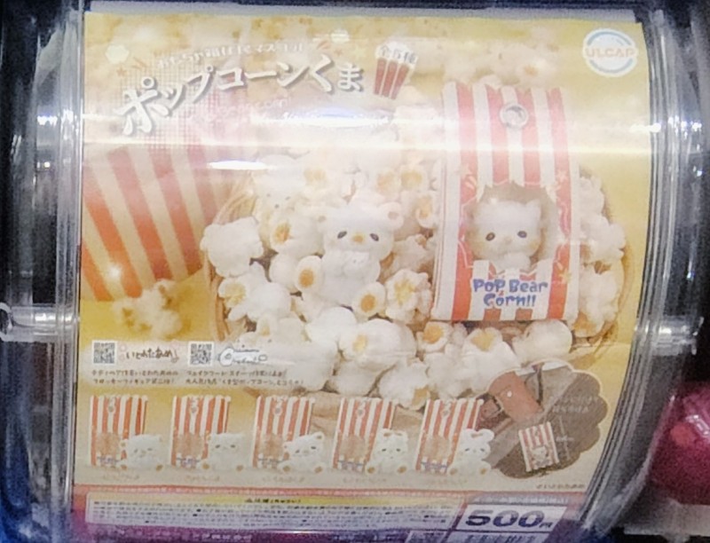 おもちゃ箱住民マスコット ポップコーンくまの価格は各500円(税込)で、全国のガチャガチャやガチャなどで手に入れることができます。