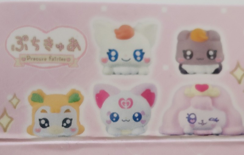 ぷちきゅあマスコットwithチョコスナック3は、プリキュアのスピンオフシリーズ ショートアニメ「ぷちきゅあ~Precure Fairies~」に出てくるプリキュアのちいさななかまたち ぷちきゅあのボールチェーン付きマスコットの第3弾です。
