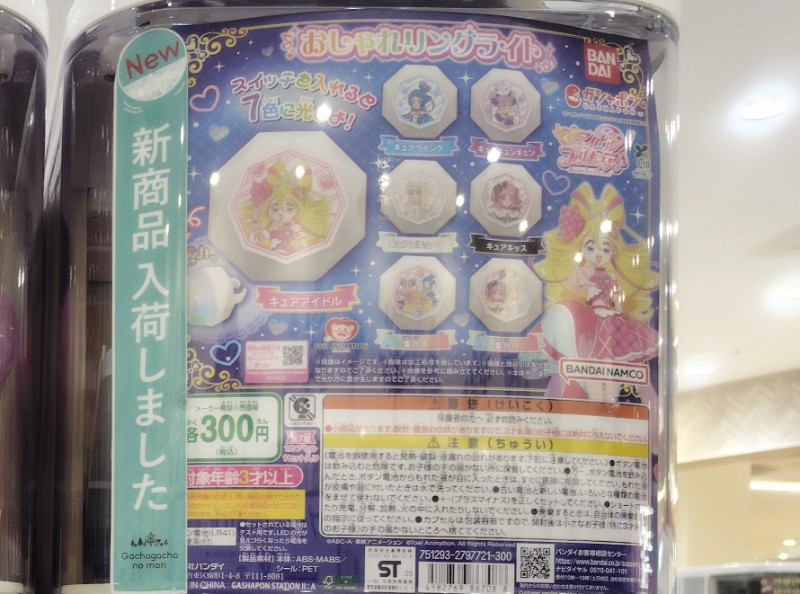 キミとアイドルプリキュア♪ おしゃれリングライトの価格は各300円(税込)で、全国のガシャポンやガチャガチャなどで手に入れることができます。