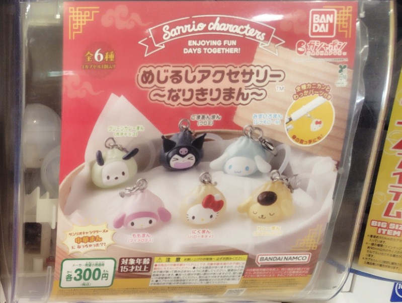サンリオキャラクターズ~なりきりまん~ めじるしアクセサリーは、ハローキティやマイメロディ、クロミなどが本物の中華まんみたいな姿になった、おいしそうなめじるしアクセサリーでで、全6種を楽しめます。