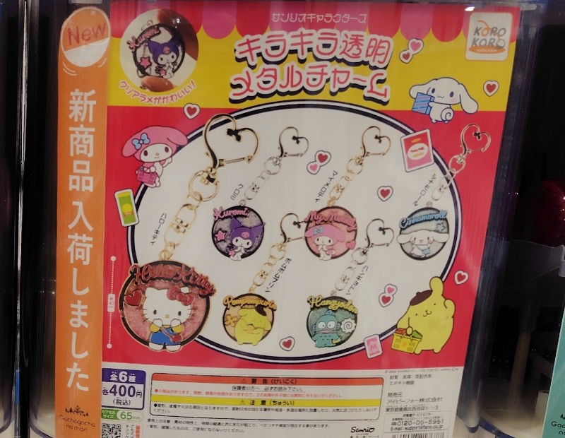 サンリオキャラクターズ キラキラ透明メタルチャームの価格は各400円(税込)で、全国のガチャガチャやガチャポン、ガチャなどで手に入れることができます。