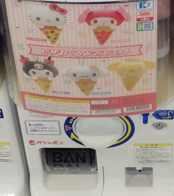 サンリオキャラクターズ ピザおくるみマスコットの価格は500円(税込)で、全国のガチャガチャやガチャポン、ガチャなどで手に入れることができます。