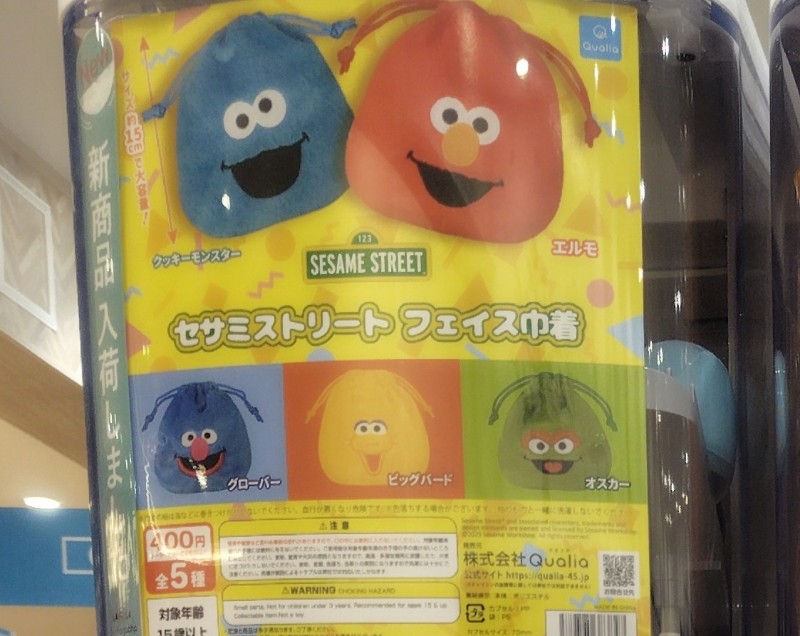 セサミストリート フェイス巾着の価格は各400円(税込)で、全国のガチャガチャやガチャポン、ガチャなどで手に入れることができます。