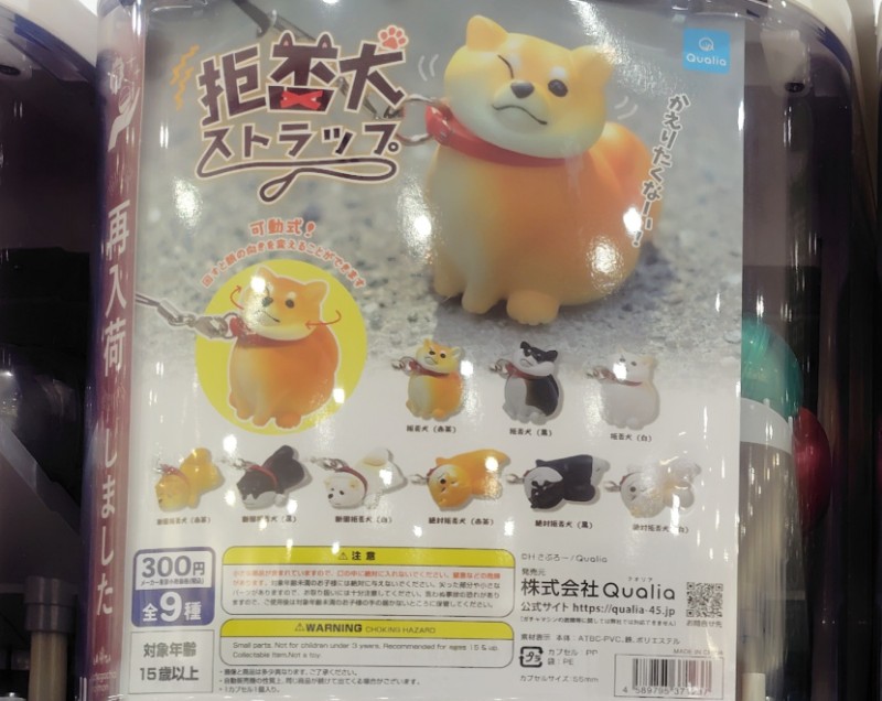 拒否犬 ストラップは、全国のガチャガチャやガチャポン、ガチャなどで手に入れることができるカプセルトイで、全9種のラインナップです。