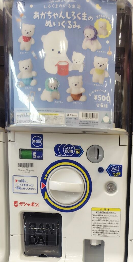 しろくまのいる生活 あかちゃんしろくまのぬいぐるみの楽しみ方は、ガチャガチャを楽しむです。