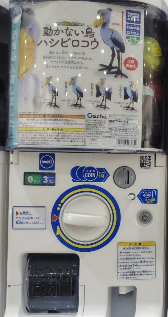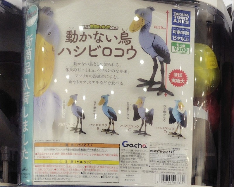あそべる生物フィギュアシリーズ 動かない鳥 ハシビロコウの価格は各300円(税込)で、全国のガチャガチャやガチャなどで手に入れることができます。
