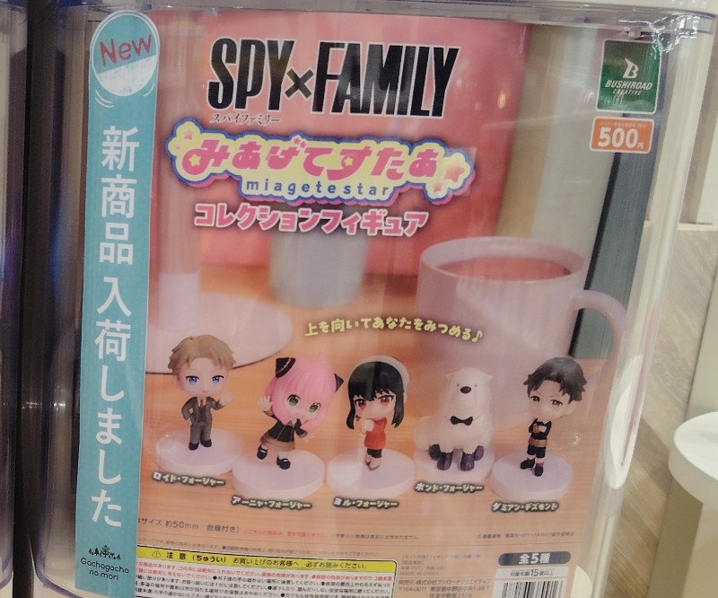 SPY×FAMILY みあげてすたぁコレクションフィギュアの価格は各500円(税込)で、全国のガチャガチャやガチャポン、ガチャなどで手に入れることができます。