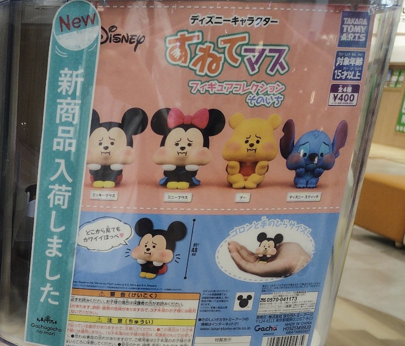 ディズニーキャラクター すねてマス フィギュアコレクション そのいちの価格は各400円(税込)で、全国のガチャガチャやガチャなどで手に入れることができます。