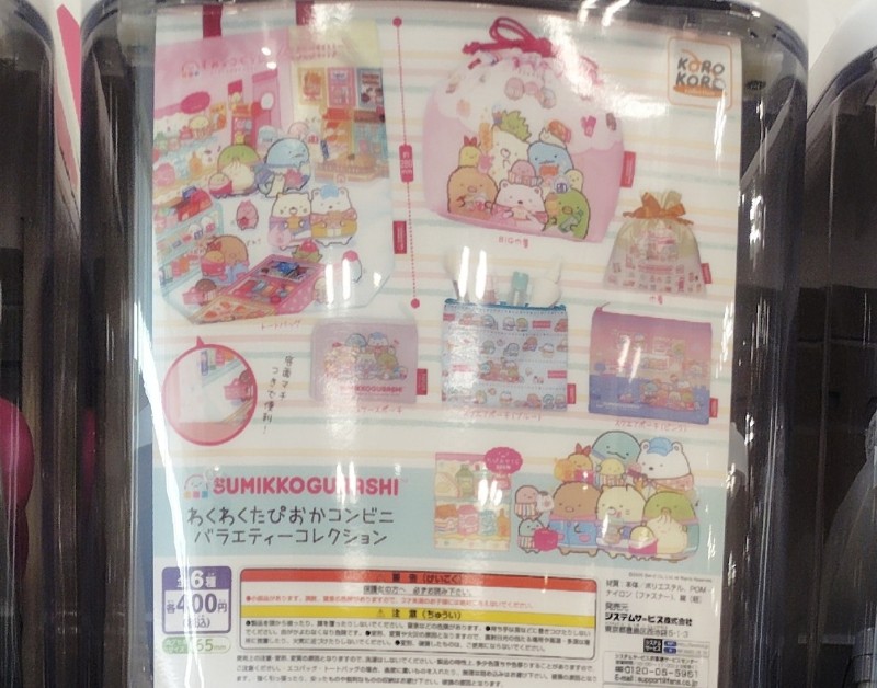 【すみっコぐらし わくわくたぴおかコンビニ バラエティーコレクション】は、カプセルトイに登場した、「わくわくたぴおかコンビニ」デザインのすみっコぐらしのトートバッグや巾着です。